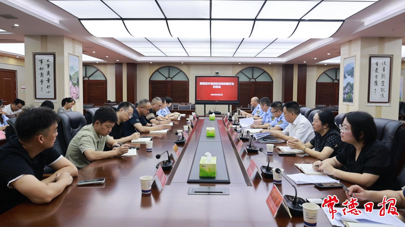 常德日報記者 曾幀/文 劉頌/圖 通訊員 毛燕 翟振華 為切實規范校外培訓機構進校園行為,保障學生和家長合法權益,從源頭遏制校外培訓機構違規進校園行為,9月2日,市市場監管局與市教育局聯合行動,約談了23家市城區小學(含中學小學部)的相關負責人,為校園培訓市場秩序筑牢“防護墻”。