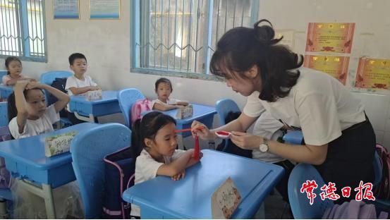 典禮在莊重的“朱砂啟智”儀式中拉開帷幕。校長和班主任為一年級新生點朱砂,寄予“眼明心亮、智慧啟航”的美好祝愿。隨后,六年級學生牽手一年級新生有序入場,全場以熱烈掌聲歡迎新同學。