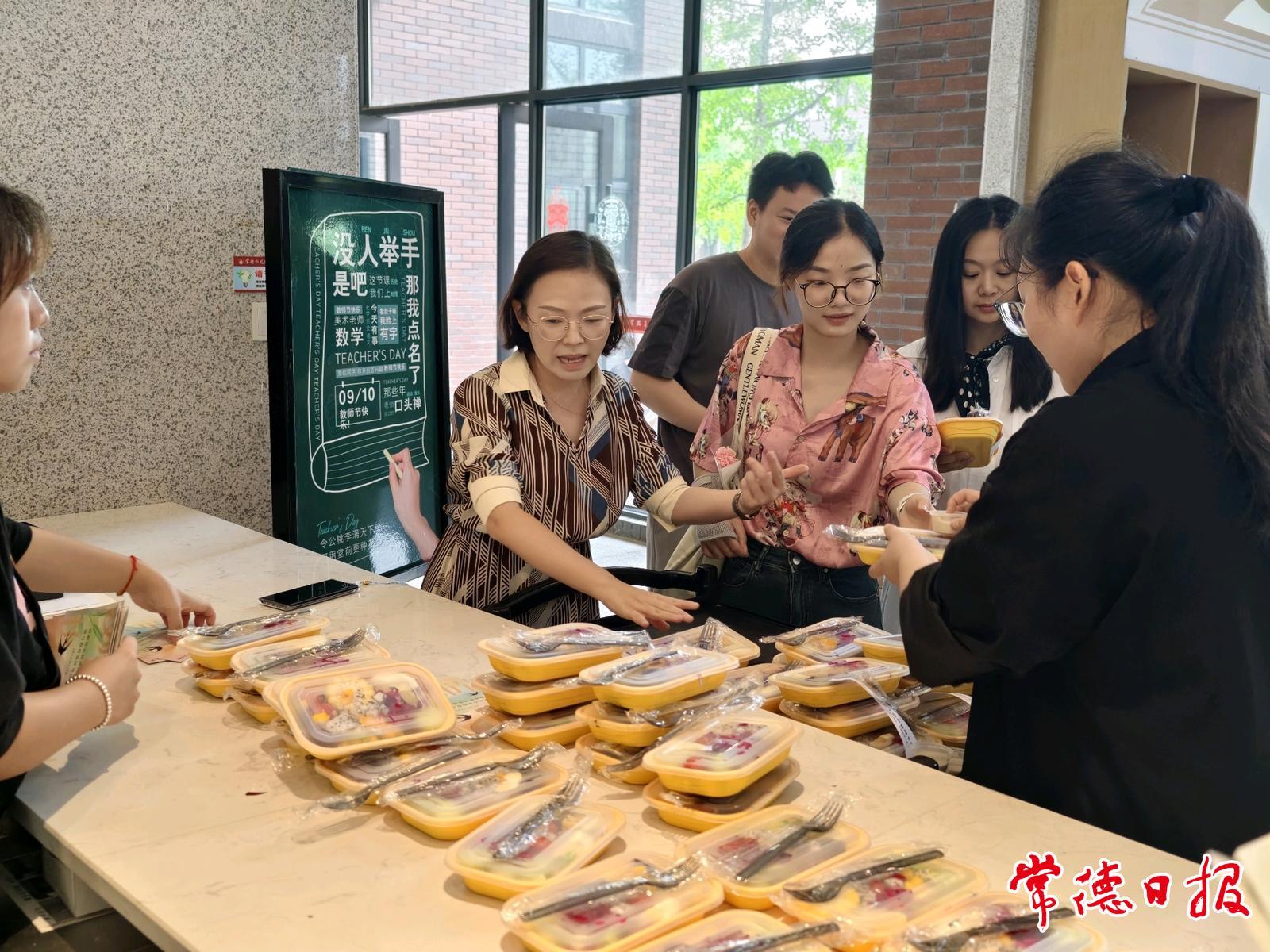 教室里,同學們也以各自獨特的方式向老師們送上節日的祝福。有的同學精心準備了手寫賀卡,將對老師的敬愛與感恩之情融入其中;有的班級全體同學齊聲喊出祝福話語,那充滿朝氣的聲音在教室里回蕩,傳遞著深深的敬意。智慧文旅學院中餐烹飪專業的學生們更是發揮自身專業特長,提前精心準備了輕食與果茶。活動當天,他們滿懷敬意地將親手制作的健康美味食品送到老師們手中,以這份象征著健康與甜蜜的禮物,表達對老師們的感恩之心。