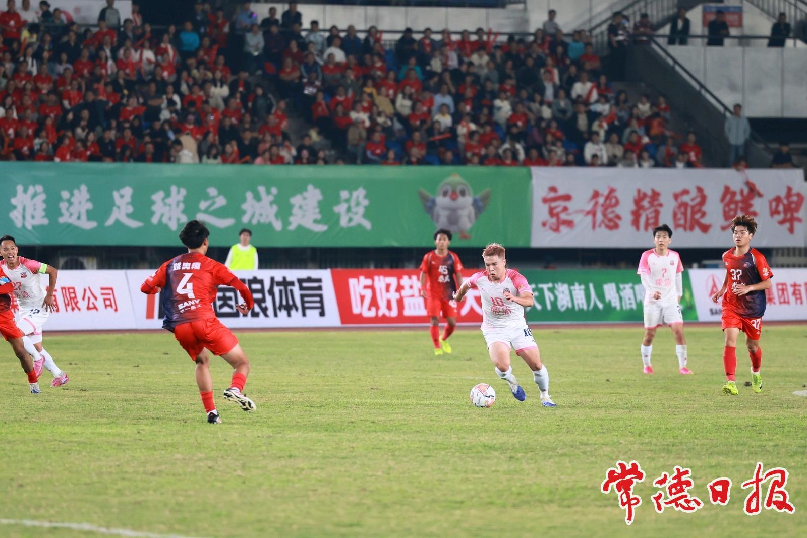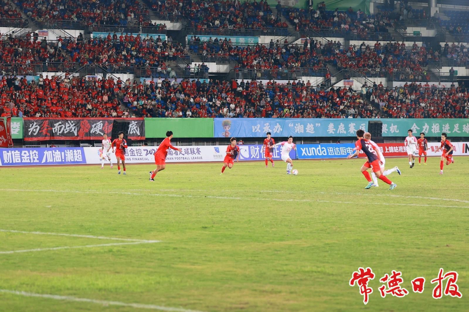 常德日報(bào)記者 王自來/文 蔡文龍/圖 9月20日晚,“湘超”常德隊(duì)客場對陣主隊(duì)婁底隊(duì),21687名球迷現(xiàn)場為兩隊(duì)搖旗助威。依靠26號球員夏宇航的進(jìn)球,常德隊(duì)1比0擊敗對手,取得兩連勝。
