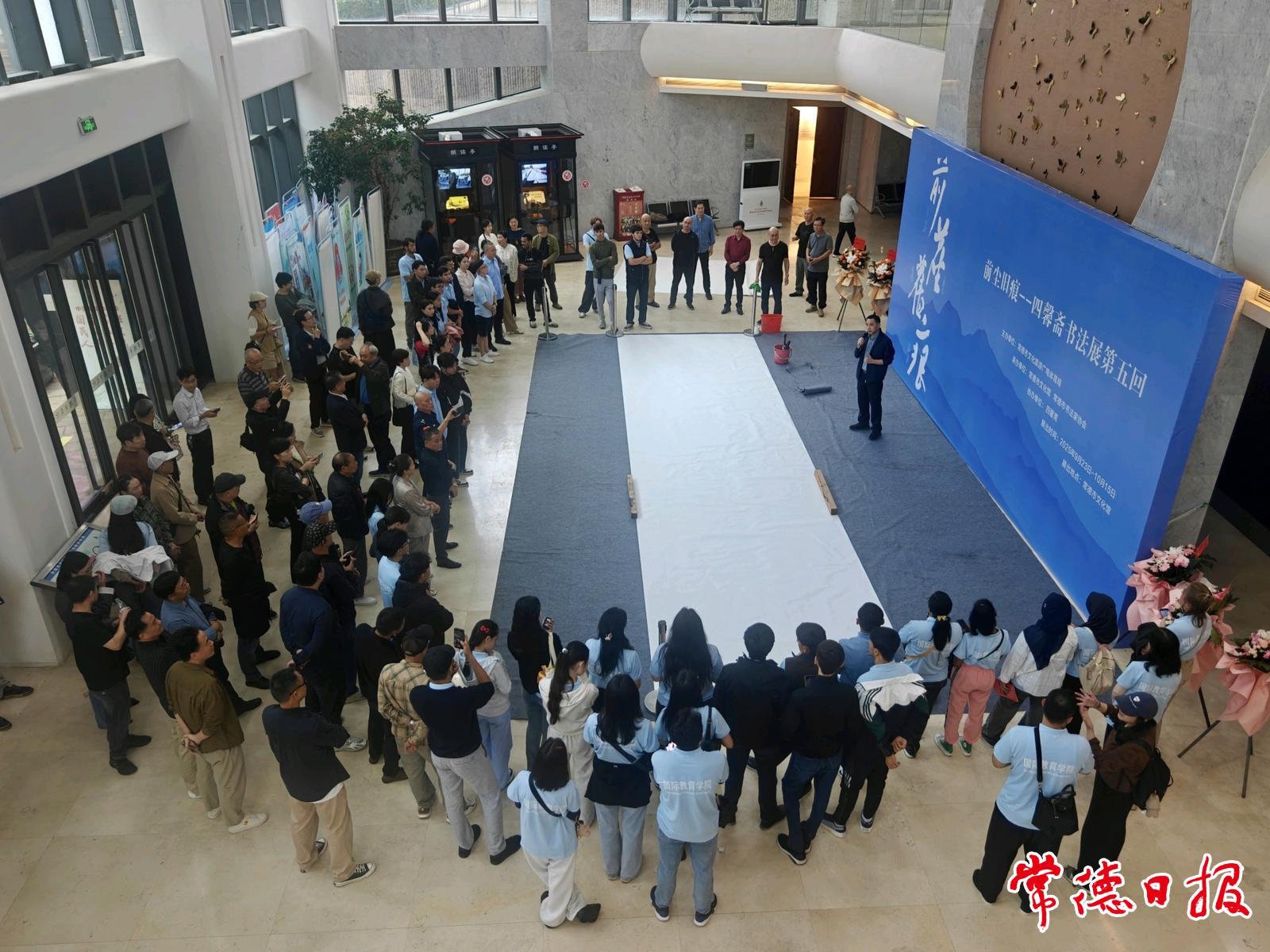 尤為引人注目的是,來(lái)自常德職業(yè)技術(shù)學(xué)院國(guó)際教育學(xué)院的79名留學(xué)生專(zhuān)程前來(lái)觀展,沉浸式體驗(yàn)中國(guó)傳統(tǒng)文化的魅力。在老師的指導(dǎo)下,留學(xué)生們手握毛筆嘗試創(chuàng)作,寫(xiě)下“開(kāi)心”“我愛(ài)中國(guó)”等內(nèi)容,感受書(shū)法藝術(shù)。
