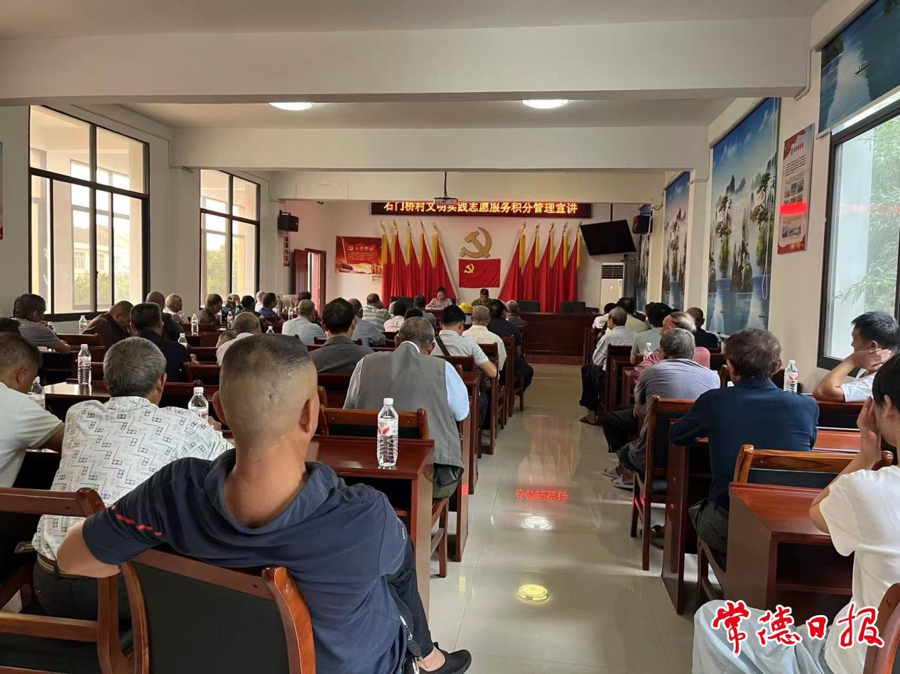 常德日報通訊員 周鵬 文/圖 為進一步激發村民參與文明實踐活動中的積極性和主動性,近日,武陵區石門橋鎮石門橋村新時代文明實踐站開展文明實踐志愿服務積分管理宣講活動,村兩委干部、在家黨員、志愿者等參加。
