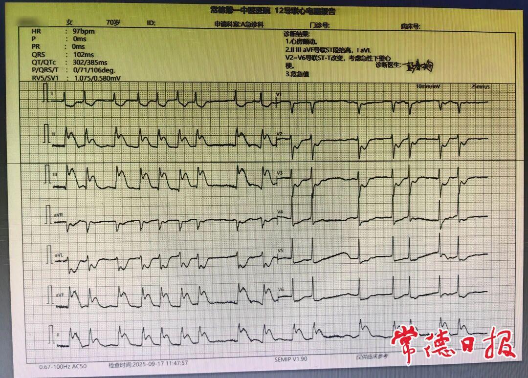 常德日?qǐng)?bào)記者 王浪 徐珊珊 通訊員 吳秀英 文/圖 “有沒得醫(yī)生,快來人幫忙!”9月17日11時(shí)29分,常德市第一中醫(yī)醫(yī)院門診二樓,一聲急促的呼救聲響起。70歲的薛奶奶(化名)在家人陪伴候診時(shí),突然倒地,不省人事。
