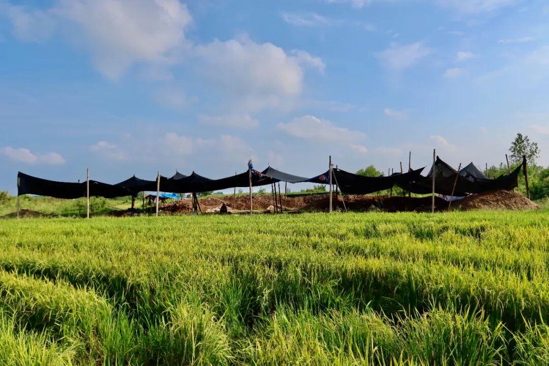 考古人員在棚子下探尋文明的蹤跡。圖/曹宇旋
