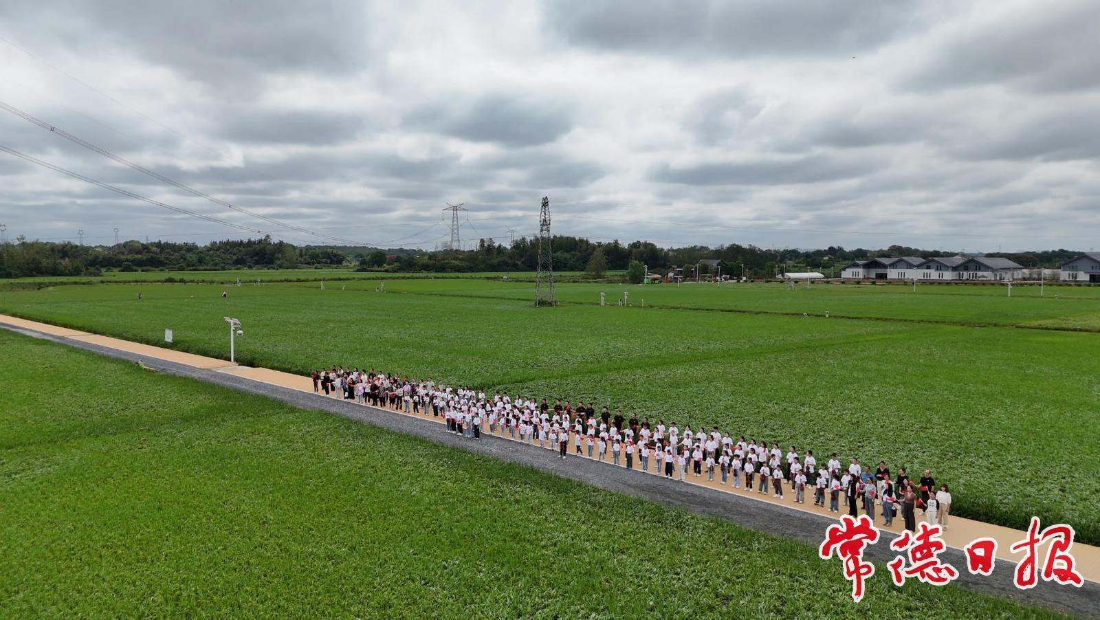 常德日報記者 陳子堯 伍銀 馮順前 文/圖 9月27日上午,鼎城區謝家鋪鎮港中坪農文旅融合區的萬畝示范片,《我和我的祖國》的旋律悠然響起。一場以“稻浪歡歌 心向祖國”為主題的快閃活動在此展開,稻浪與人們的歌聲交融,為秋日田野增添了勃勃生機。