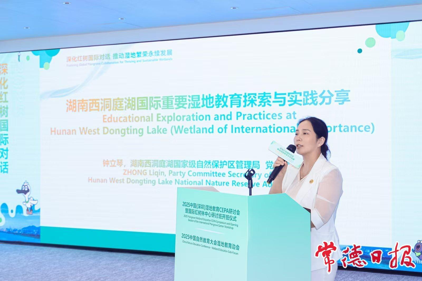 常德日報記者 曾玉英 通訊員 丁浩 文/圖 日前,中國(深圳)濕地教育CEPA研討會在深圳市福田區舉辦。西洞庭湖國家級自然保護區管理局受邀參加會議并作典型發言。
