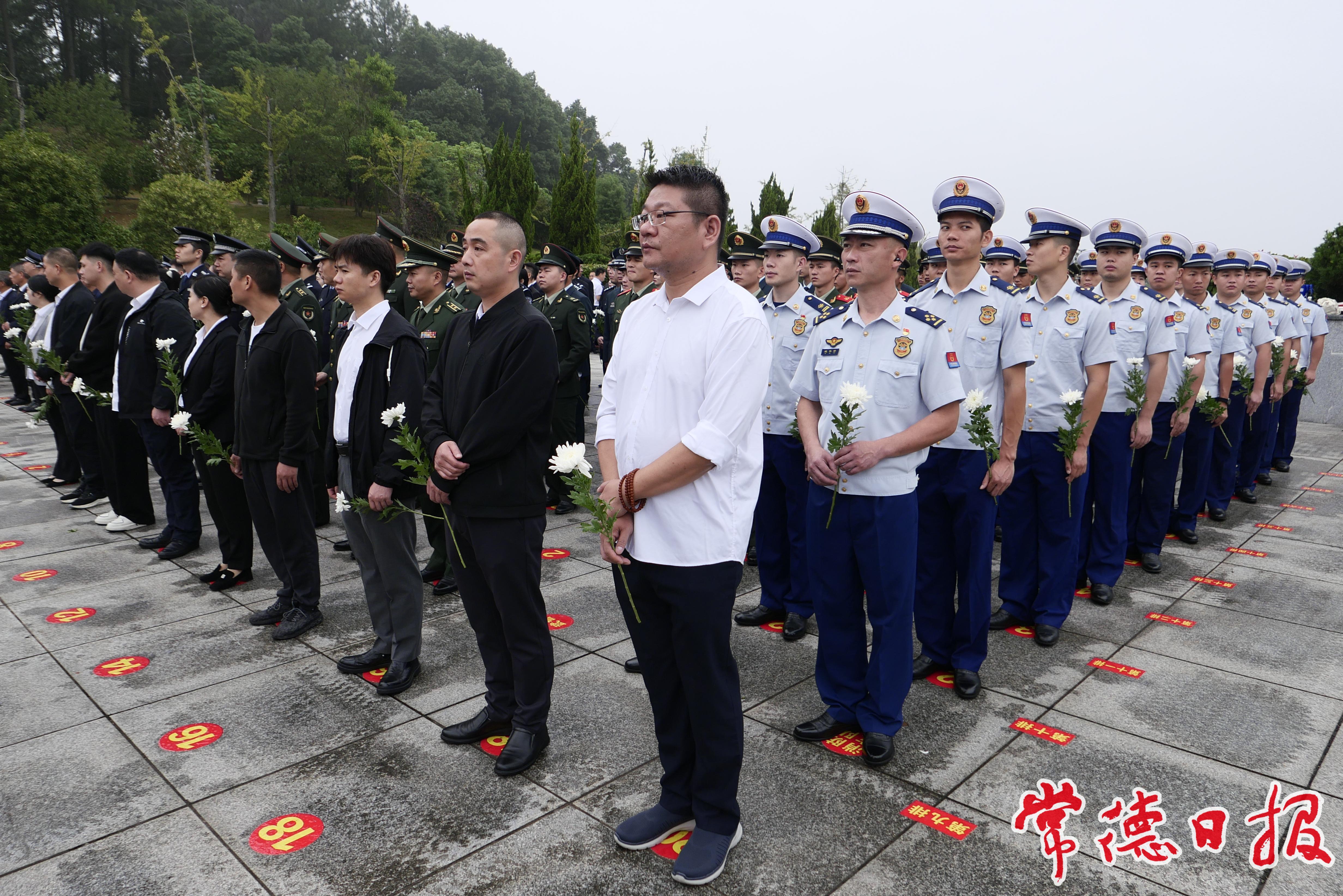 青山有幸埋忠骨,松柏默然祭英靈。常德烈士紀念碑巍峨聳立,烈士公園松柏蒼翠,儀式現場莊嚴肅穆。上午8時10分左右,烈士紀念日向人民英雄敬獻花籃儀式正式開始。伴隨著雄壯的《義勇軍進行曲》,全場齊聲高唱中華人民共和國國歌。