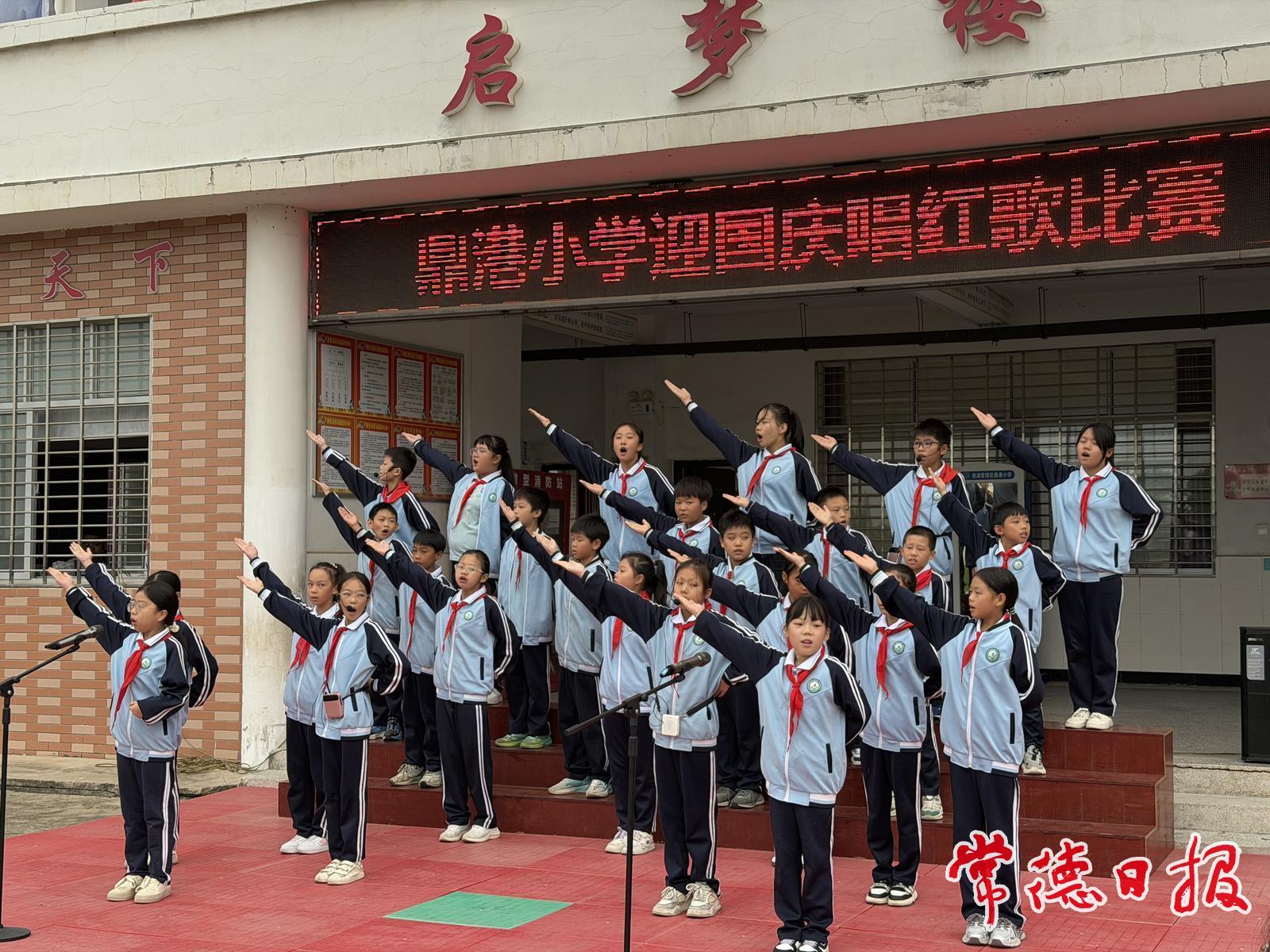 常德日報記者 楊榮國 通訊員 張敏誠 文/圖 為慶祝中華人民共和國成立76周年,9月29日,西湖管理區鼎港小學成功舉辦2025年迎國慶唱紅歌比賽。同學們以飽滿的熱情和嘹亮的歌聲,抒發了對祖國的深情祝福,展現了新時代少年蓬勃向上的精神風貌。