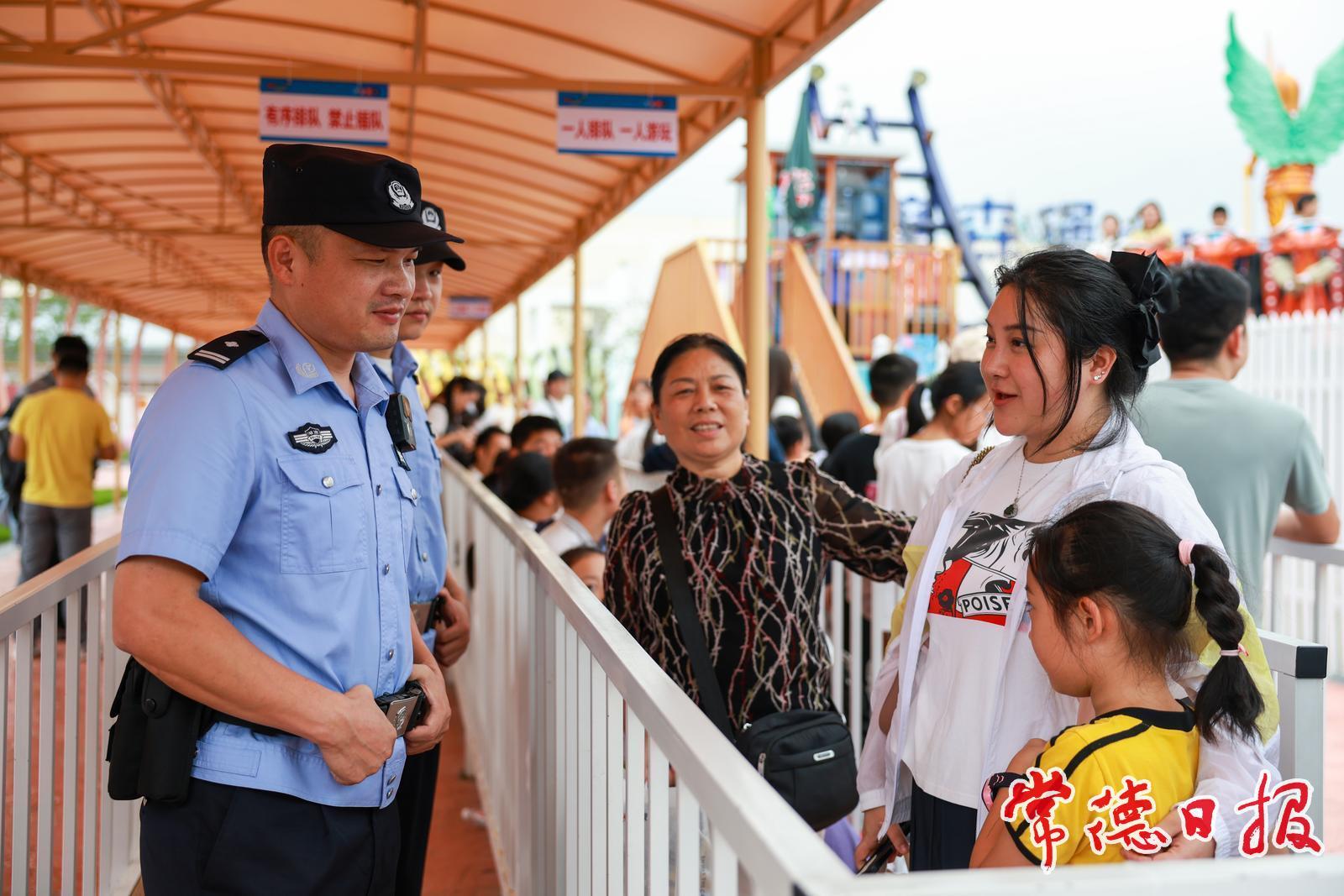 國(guó)慶中秋假期的柳葉湖旅游度假區(qū),人流如織,歡聲笑語(yǔ)。在卡樂(lè)星球、摩森堡c.park微動(dòng)力游樂(lè)場(chǎng)等景區(qū),游客們臉上洋溢著節(jié)日的喜悅。在這歡樂(lè)的海洋中,常德市公安局柳葉湖分局的民輔警們堅(jiān)守在崗,護(hù)航文旅經(jīng)濟(jì)高質(zhì)量發(fā)展。