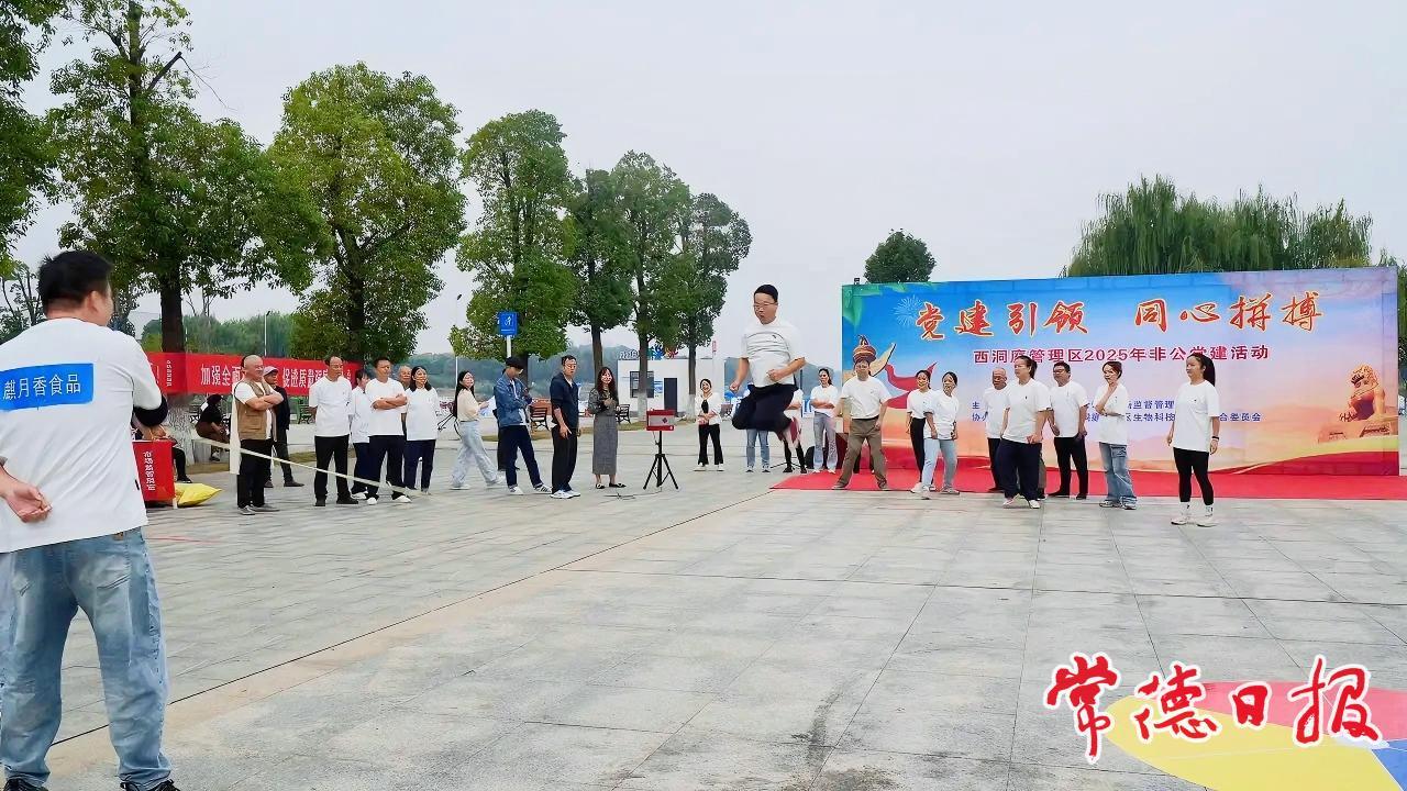 常德日報記者 楊榮國 通訊員 彭雅婷 文/圖 10月15日上午,西洞庭管理區“黨旗引領 同心拼搏”主題趣味運動會在沙河風光帶廣場順利舉行。活動由西洞庭管理區市監局主辦,園區黨委協辦,全區41個黨支部黨員代表齊聚一堂,以運動促交流,以協作聚合力。