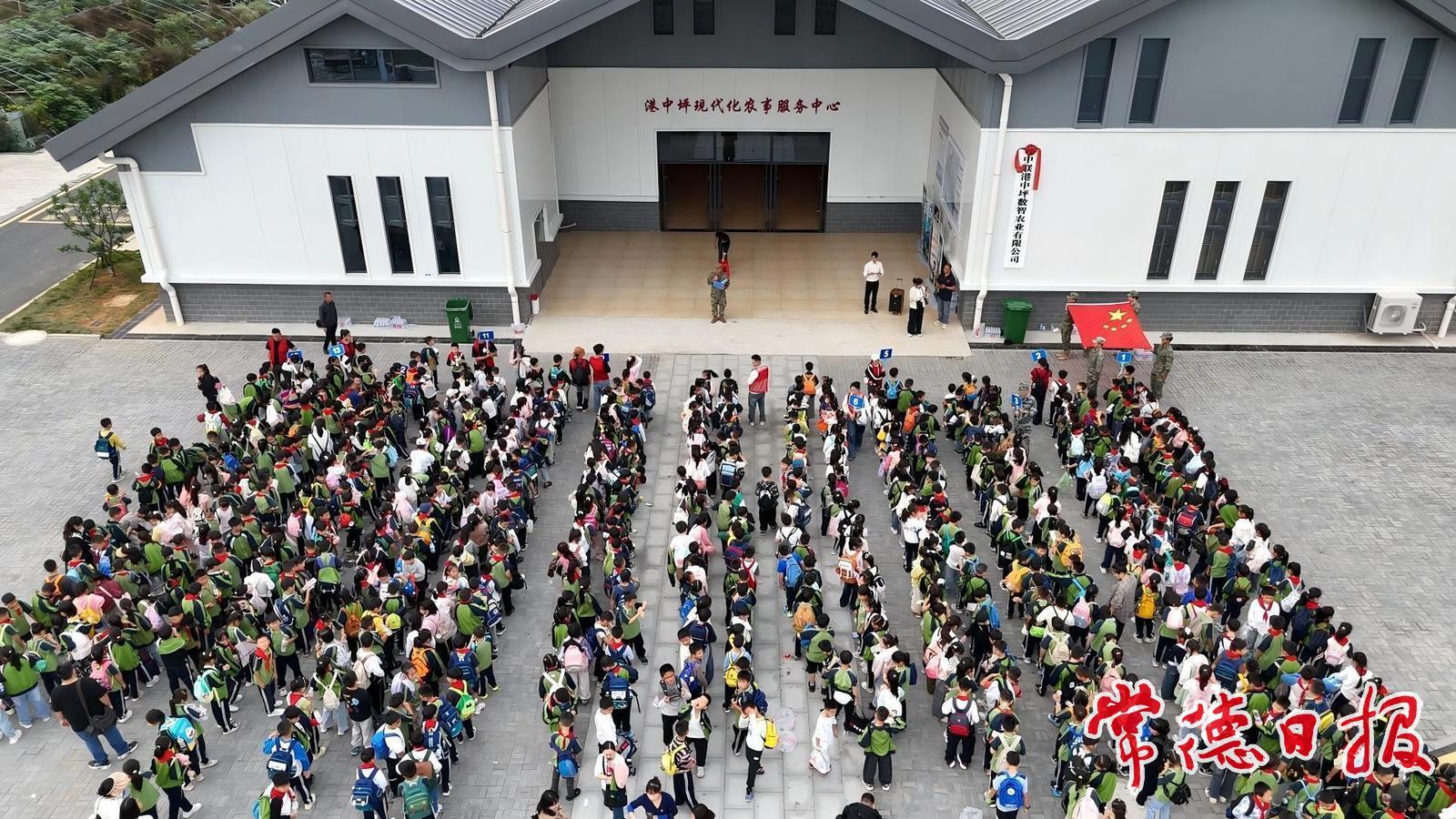 常德日報記者 姚瑤 伍銀 馮順前 文/圖 10月15日,常德鼎城區謝家鋪鎮港中坪農文旅融合區迎來鼎城區江南小學600余名三年級學生,他們在此共同開啟“紅色傳承·鄉村振興·糧安天下”2025年秋季農業研學活動,沉浸式體驗農耕文化探索之旅。