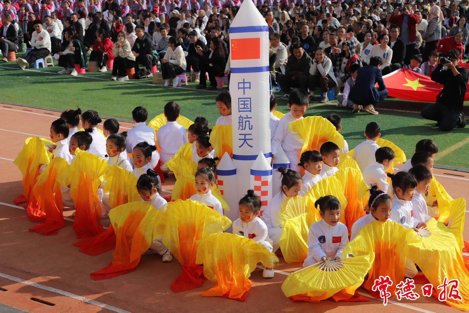 開幕式上,伴隨著激昂的《運動員進行曲》,國旗隊、彩旗隊、裁判員隊依次登場。三、四年級學生的韻律操、啦啦操和跑操展示讓人眼前一亮,他們動作整齊、嫻熟,釋放了活力與律動感;一、二年級的學生方陣依次登場,他們身著宇航員、海軍、空軍等特色服裝,展現(xiàn)了良好的精神面貌和昂揚的斗志。