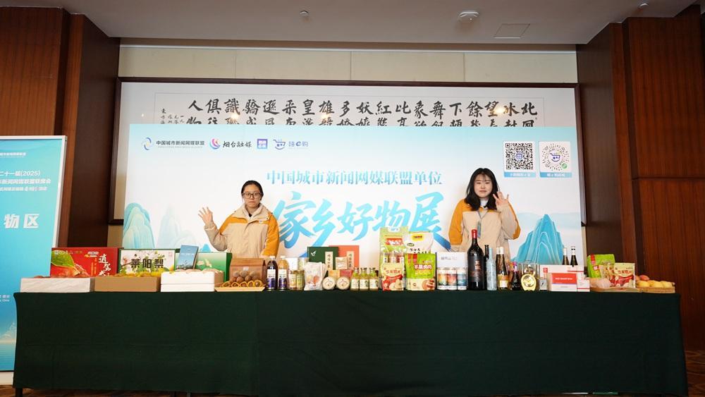 煙臺融媒10月29日訊(膠東在線記者 孫子研)10月28日,第二十一屆中國城市新聞網媒聯盟聯席會在煙臺舉行。會場外特設的“家鄉好物展區”成為一大亮點,煙臺蘋果、萊陽梨、煙薯25等優質農產品,以及張裕葡萄酒、煙臺供銷社茶葉、美時嘉鐘表、小紅盒化妝品等特色產品集中展示。同時,廣西南寧、天津的特色產品也同臺亮相,為來自全國各地的媒體代表獻上一場跨越山海的“好物盛宴”。