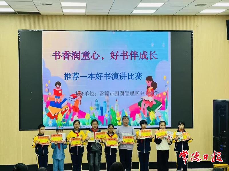 常德日?qǐng)?bào)記者 楊榮國(guó) 通訊員 鄒琳 文/圖 為激發(fā)學(xué)生閱讀熱情,營(yíng)造積極向上的校園文化,近日,西湖管理區(qū)中心小學(xué)舉辦以“書香潤(rùn)童心,好書伴成長(zhǎng)”為主題的“推薦一本好書”演講比賽。