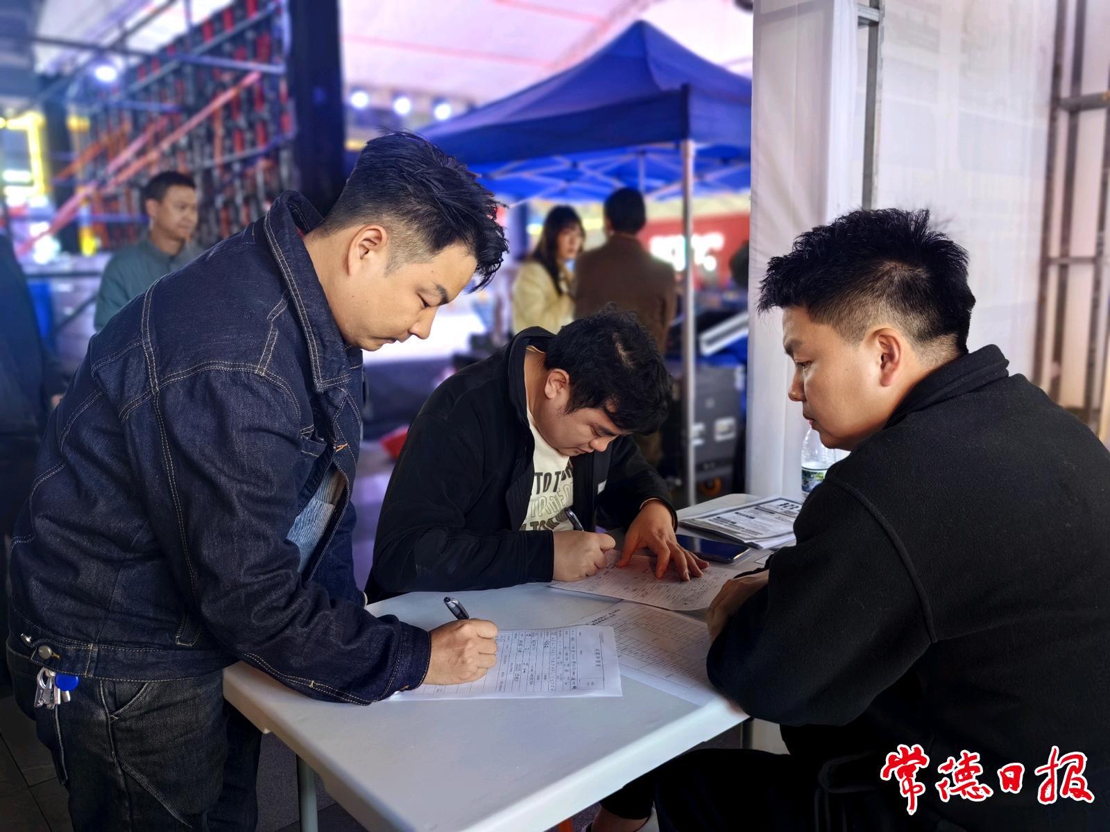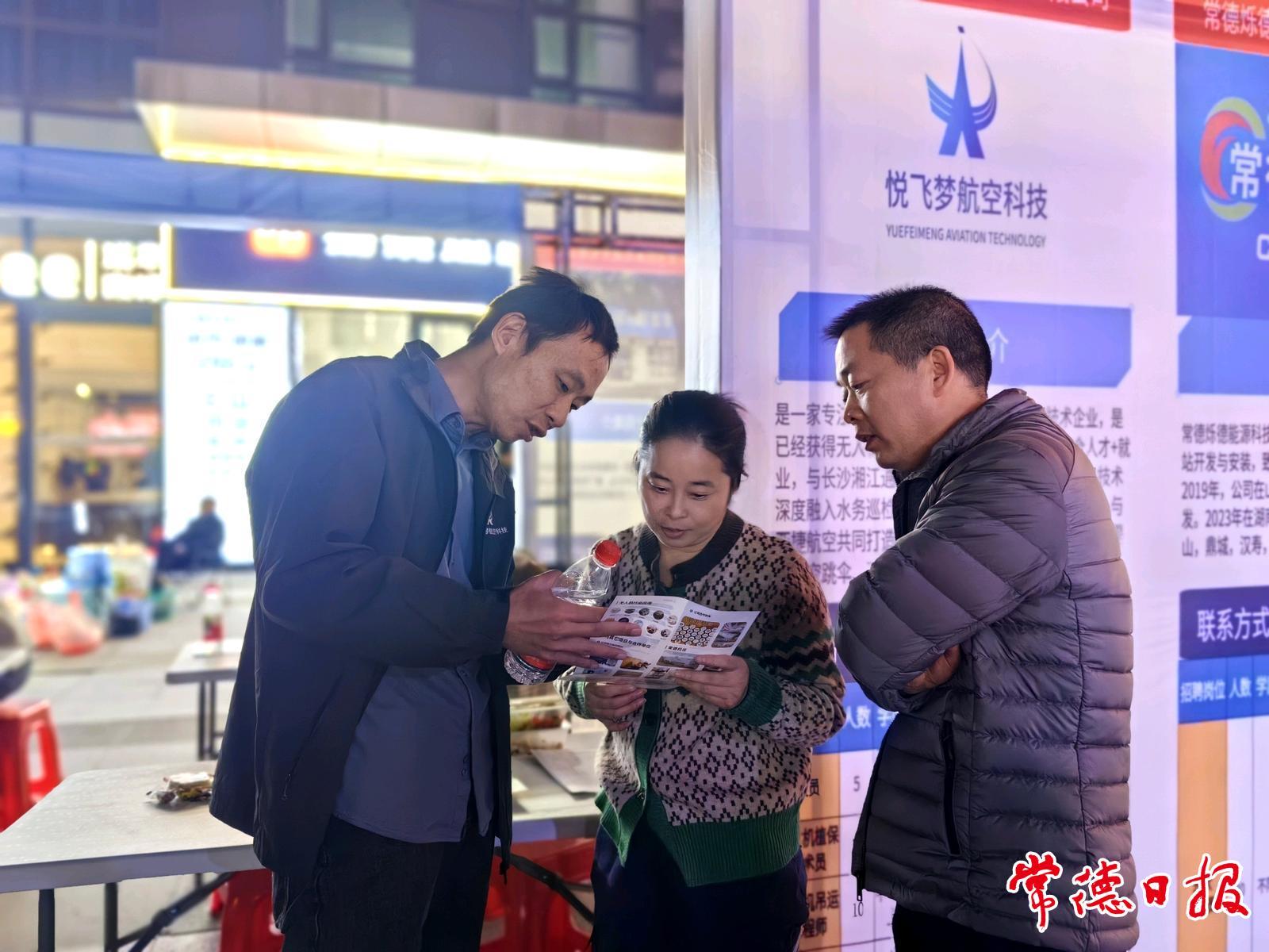 常德日?qǐng)?bào)記者 姚懿容 通訊員 易麗萍 文/圖 11月14日、15日晚,常德萬(wàn)達(dá)廣場(chǎng)門前人潮涌動(dòng),一場(chǎng)“招聘夜市”——2025年常德市“金秋招聘月”重點(diǎn)群體專場(chǎng)招聘會(huì)在此舉行。常德中聯(lián)重科液壓有限公司、常德遠(yuǎn)程醫(yī)療科技有限公司等40余家企業(yè)現(xiàn)場(chǎng)“擺攤”,提供涵蓋機(jī)械制造、醫(yī)療科技、光伏能源、無(wú)人機(jī)技術(shù)、金融保險(xiǎn)等熱門領(lǐng)域的3000多個(gè)就業(yè)崗位,滿足不同層次、不同專業(yè)背景求職者的多元化需求。