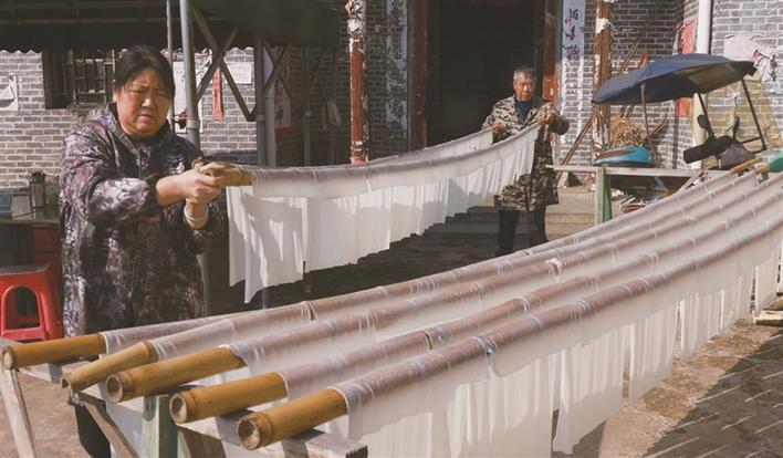 “冬天才壯觀,家家戶戶都做粉,前坪全是晾曬的粉皮。”曹曉琴說,現(xiàn)在食客們慕名而來,手工切粉一時(shí)供不應(yīng)求,村民們撿拾起撂下多年的制粉工藝,“現(xiàn)在有30多家”。天晴的冬日,家家戶戶爐火旺盛,米香彌漫,能見到陽光的空地里,滿是粉皮在微風(fēng)中飄揚(yáng)。