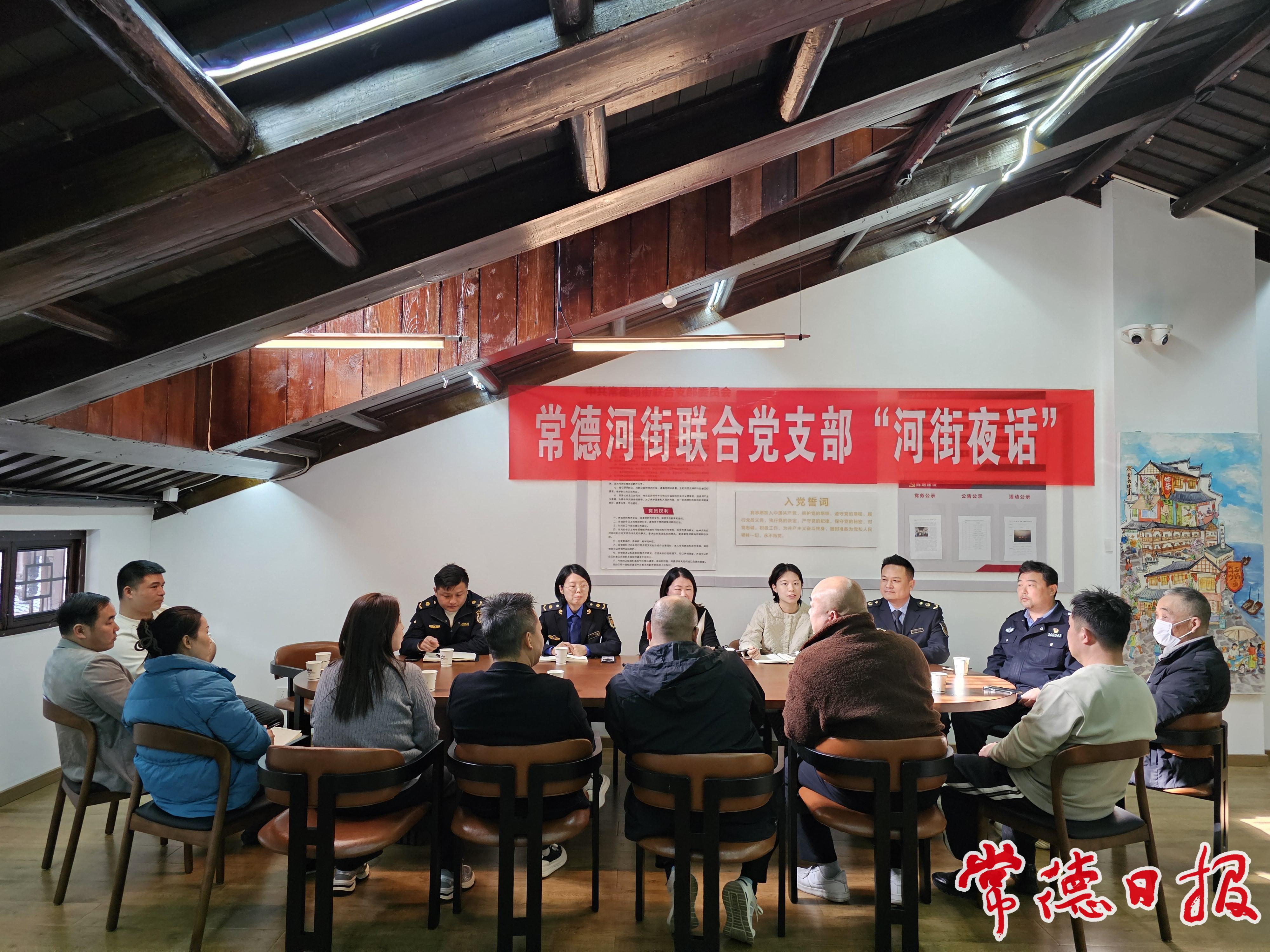 “常德河街人流量大,停車很難,能不能設(shè)置更多的停車位?”“不少市民遛狗時(shí)未牽狗繩,寵物隨地大小便的現(xiàn)象屢見不鮮……”11月27日下午,常德河街黨群服務(wù)中心內(nèi),常德河街聯(lián)合黨支部組織的“河街夜話”正熱烈進(jìn)行中。現(xiàn)場,大家圍繞各類民生問題各抒己見,公安、城管、市場監(jiān)管等相關(guān)部門逐一回應(yīng)訴求。