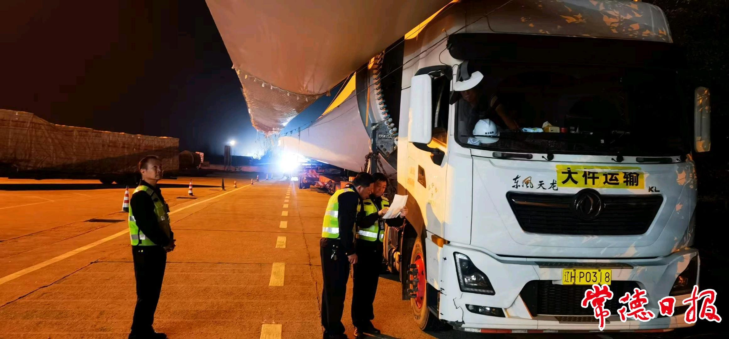 常德日報記者 胡秋菊 通訊員 張穎 文/圖 為進一步加強大件運輸執法監管,12月2日夜間,常德市交通運輸綜合行政執法支隊在桃花源服務區開展高速公路大件運輸領域安全問題專項整治行動。