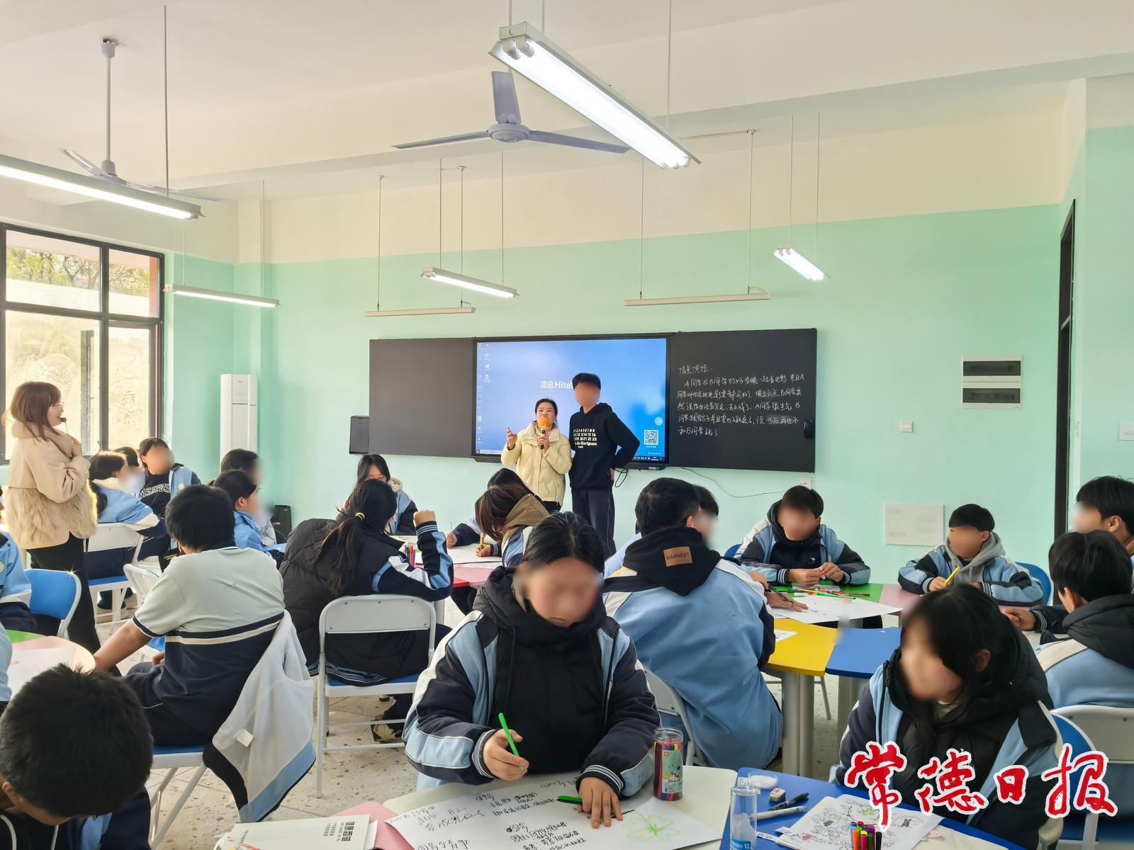 常德日?qǐng)?bào)記者 楊榮國(guó) 通訊員 毛婭敏 陳泓如 文/圖 12月25日下午,市康復(fù)醫(yī)院未成年人心理健康輔導(dǎo)中心心理咨詢師楊艷麗、戴芳華受邀來到西湖管理區(qū)第一中學(xué),為九年級(jí)學(xué)生帶來一場(chǎng)別開生面的以情緒管理為主題的團(tuán)體心理輔導(dǎo)活動(dòng),旨在幫助學(xué)生提升情緒認(rèn)知與管理能力,培養(yǎng)積極心態(tài),促進(jìn)其身心健康成長(zhǎng)。