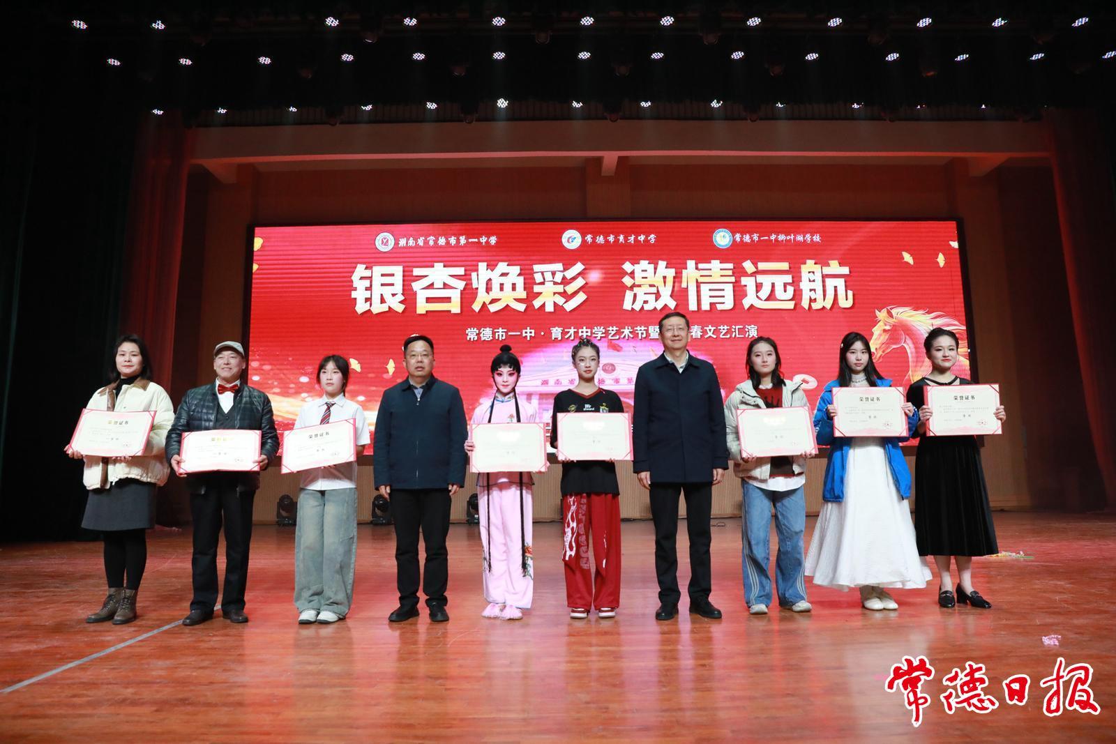 活動在開場舞《萬紫千紅》中拉開帷幕。隨后,獲得全國第28屆戲曲小梅花獎的學生羅婕溪帶來《柜中緣·手引金針繡嫁妝》,將穿越數百年的國家級非遺搬上校園舞臺,贏得滿堂喝彩。退休教師們的朗誦合唱《銀杏樹下》,以蒼勁有力的聲線,訴說著百年老校的榮光。育才中學教師的舞臺情景劇《愿》、一中柳葉湖學校學生帶來的街舞《破曉之光》、校園“十佳歌手”冠軍金栩瀟帶來的獨唱《阿刁》、原創情景劇《四大名著主角過元旦》等15個節目輪番上演。常德市一中教師的合唱《杵歌》,將晚會氣氛推向頂點。