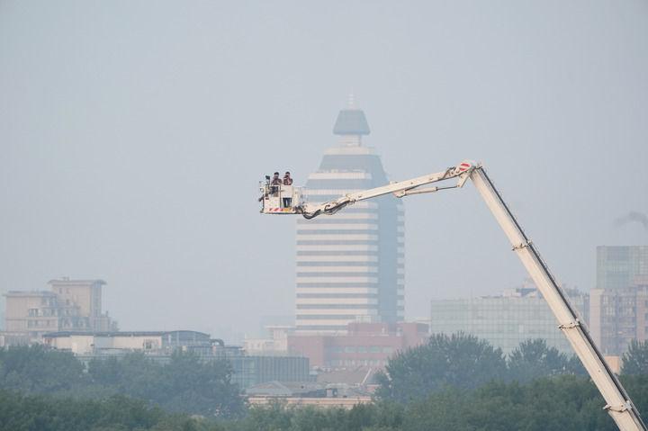 2025年9月3日清晨,報道紀念中國人民抗日戰爭暨世界反法西斯戰爭勝利80周年大會的媒體記者在工作中。新華社記者 賴向東 攝