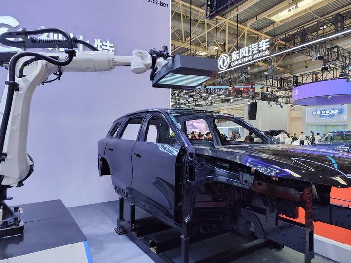 在湖南視比特機(jī)器人有限公司展臺(tái),機(jī)器在進(jìn)行汽車漆面缺陷檢測(cè)。新華社記者 金地 攝