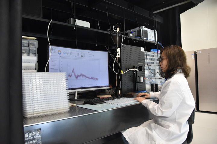 4月25日,岳麓山實(shí)驗(yàn)室的研究人員在采集種子光譜數(shù)據(jù)。新華社記者白田田 攝