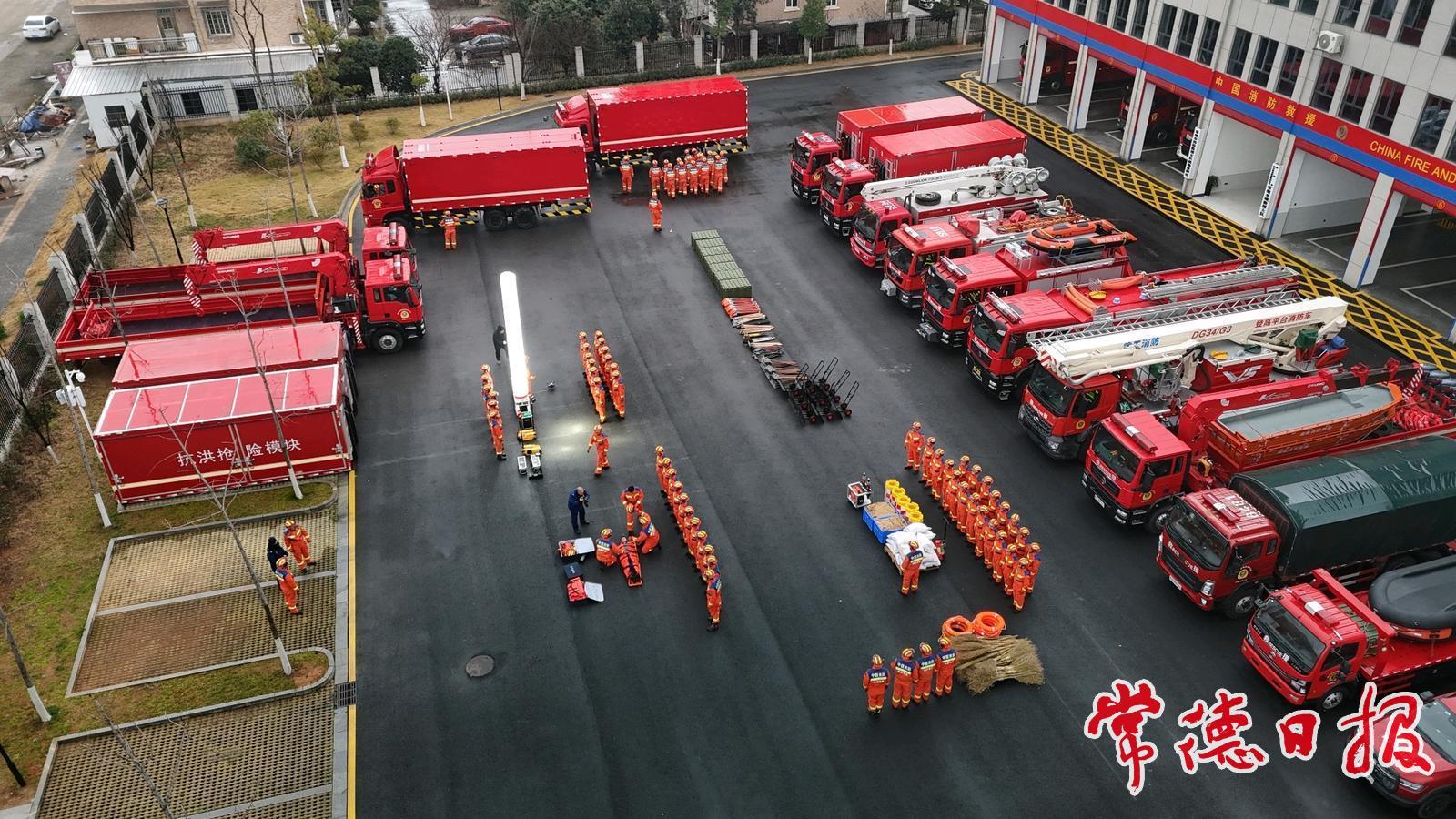 常德日報記者 蔡文龍 通訊員 陳自德 文/圖 1月19日,常德市消防救援支隊在市城區朗州路綜合訓練基地開展低溫雨雪冰凍災害專項拉動演練。此次演練以實戰化為導向,圍繞冰雪天氣常見險情設置科目,全面檢驗并錘煉隊伍應急處置與協同作戰能力。