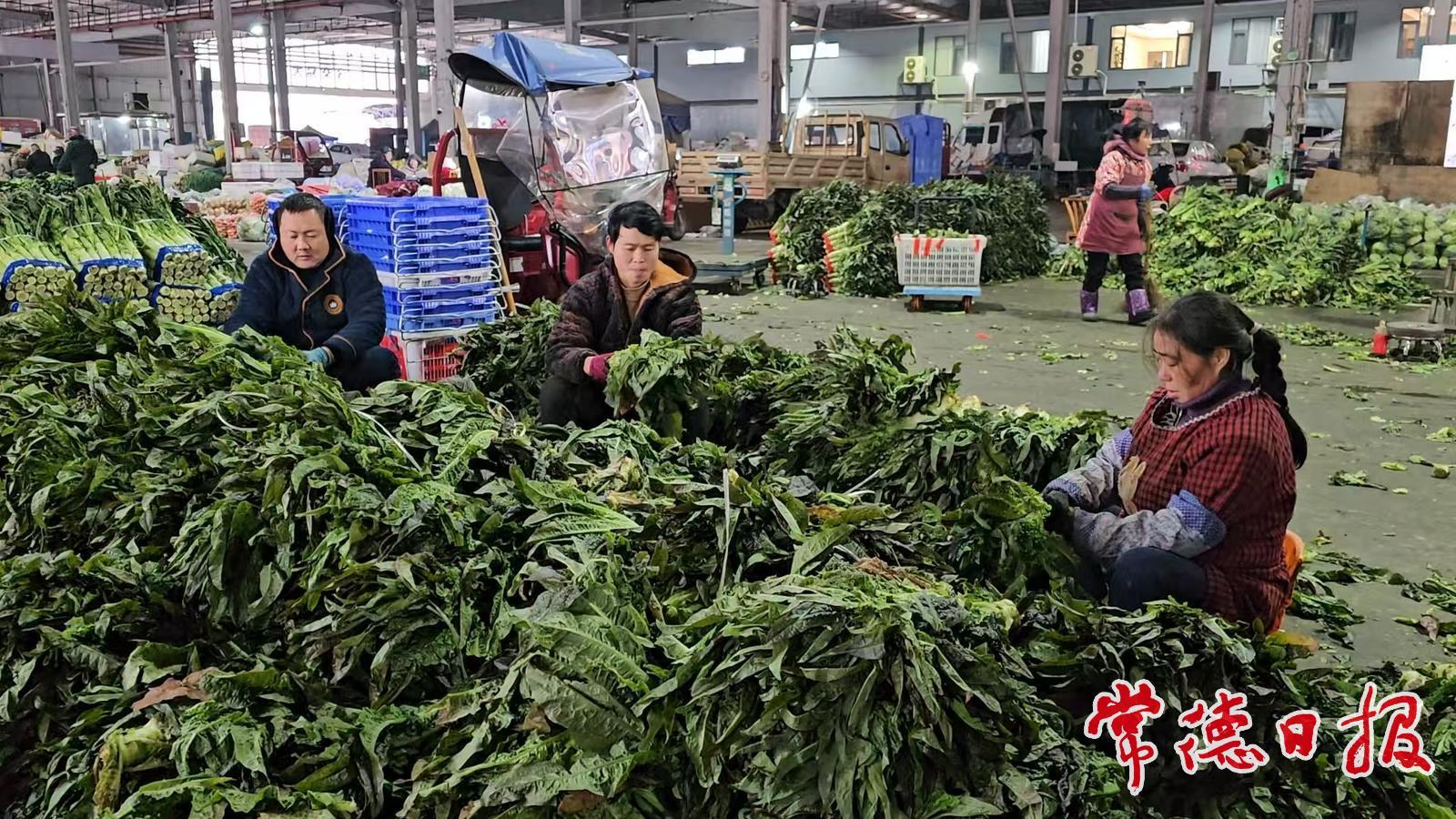作為湘西北區域最大的綜合性農產品一級批發市場,常德國際農產品交易中心內更是一派繁忙,檔口商戶們正分揀、打包新鮮萵筍,一箱箱蔬菜整裝待發,即將運往各大市場。