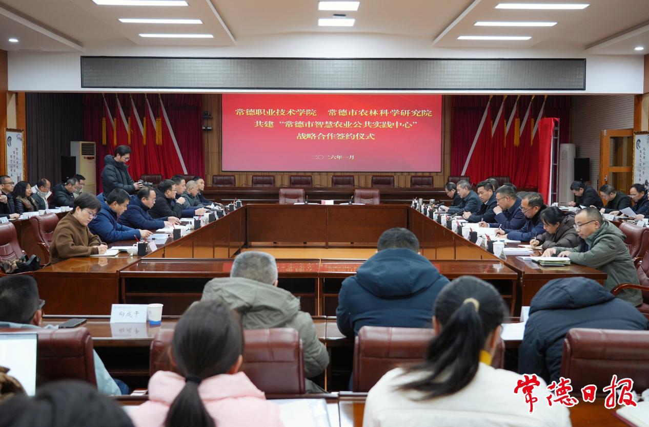 常德日報記者 李龍 通訊員 雷鶯喬 文/圖 1月21日,常德職業(yè)技術(shù)學院與市農(nóng)林科學研究院舉行合作簽約儀式,共同啟動智慧農(nóng)業(yè)公共實踐中心建設(shè)。雙方將依托生態(tài)、科研、資源聯(lián)動優(yōu)勢,推動農(nóng)產(chǎn)品研發(fā)、生產(chǎn)、銷售一體化。