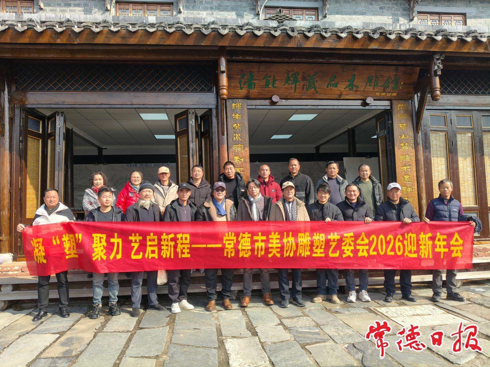 常德日報記者 李雪芹 實習生 王維 趙玲 文/圖 1月23日,在常德河街潘能輝木雕館的游船上,常德市美術家協會雕塑藝術專業委員會舉辦2026迎新年會。活動以“凝‘塑’聚力藝啟新程”為主題,通過座談交流、實地參觀等形式,總結過去,共話未來。