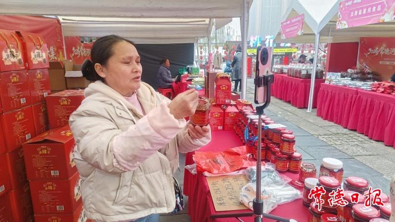 臘味濃情滿河街,沅陵好物引客來。在2026常德河街“德品直銷春節惠民”年貨節沅陵專場現場,湖南周晚女食品有限公司的展位前格外熱鬧。公司負責人周晚女憑借線下體驗試吃、線上直播帶貨的雙線銷售模式,讓這罐帶著濃郁芝麻與蒜香、承載沅陵鄉愁的油辣子走出展會、火上云端,實現銷量持續攀升。