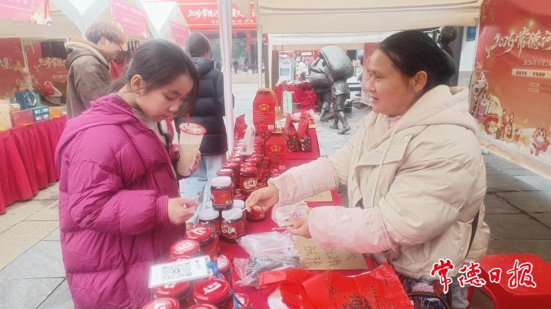 展位上,玻璃瓶裝的油辣子色澤紅亮,開蓋瞬間,芝麻的焦香、大蒜的鮮香與辣椒的醇香交織彌漫,工作人員現場開瓶試嘗,不少市民品嘗后當即下單,有的市民一次性選購多瓶,既為自家餐桌添味,也當作新春伴手禮。“這個油辣子香而不燥,回味無窮,拌菜、拌面都合適,過年備上幾瓶正合適。”現場選購的常德市民劉女士說。