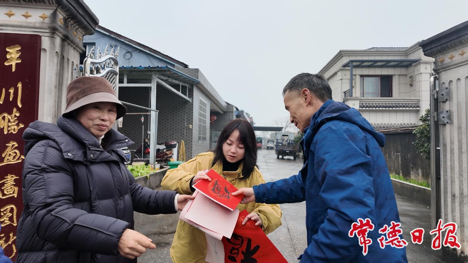 常德日報記者 黃云霞 通訊員 易嬌妃 1月30日,天氣濕冷,卻未能阻擋常德市楹聯家協會工作人員創作楹聯、送福下鄉的腳步。他們來到鼎城區謝家鋪鎮港中坪村,為村部、種糧大戶、鄉村解說員、返鄉創業人群等送上楹聯、福字和新春祝福,得到了村民們的交口稱贊。