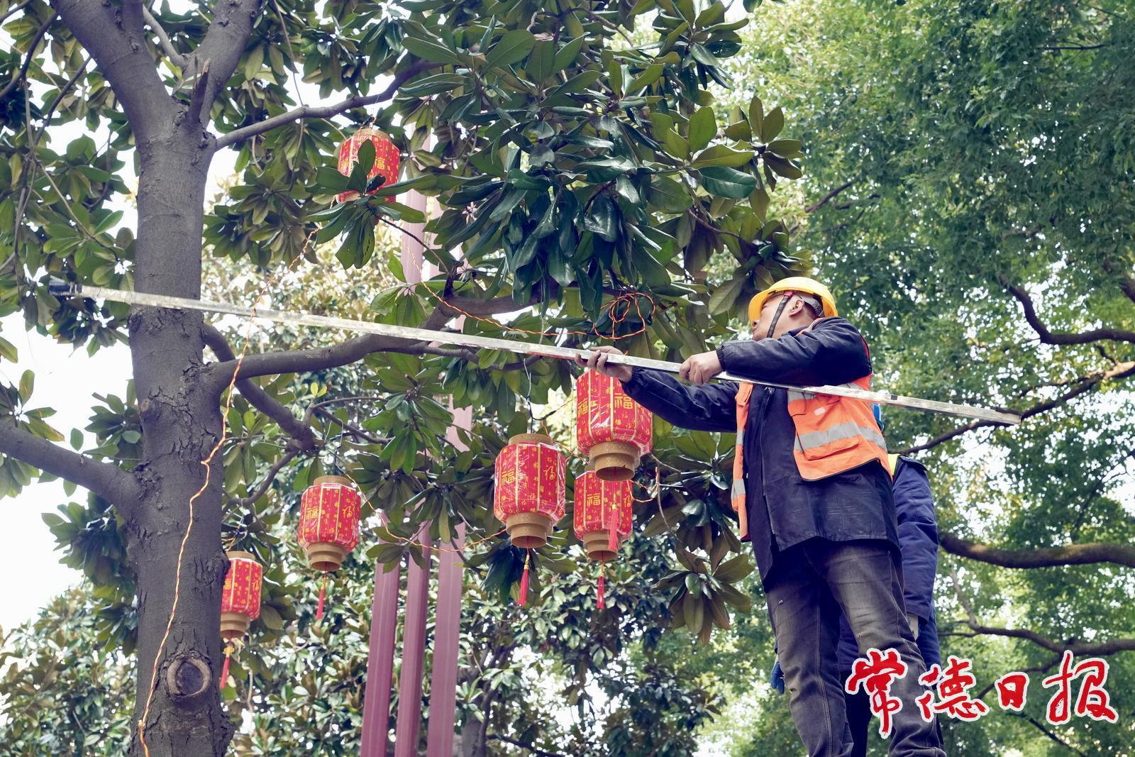 常德日報記者 伍銀 馮順前 通訊員 劉蕓彤 文/圖 近日,常德市城市照明事務中心有序推進春節氛圍布置工作,在市城區武陵大道、常德河街、柳葉大道與紫緣路交會處、常德桃花源機場出入口等重點區域和路段,開展燈飾懸掛安裝工作,為即將來臨的新春佳節增添喜慶色彩。