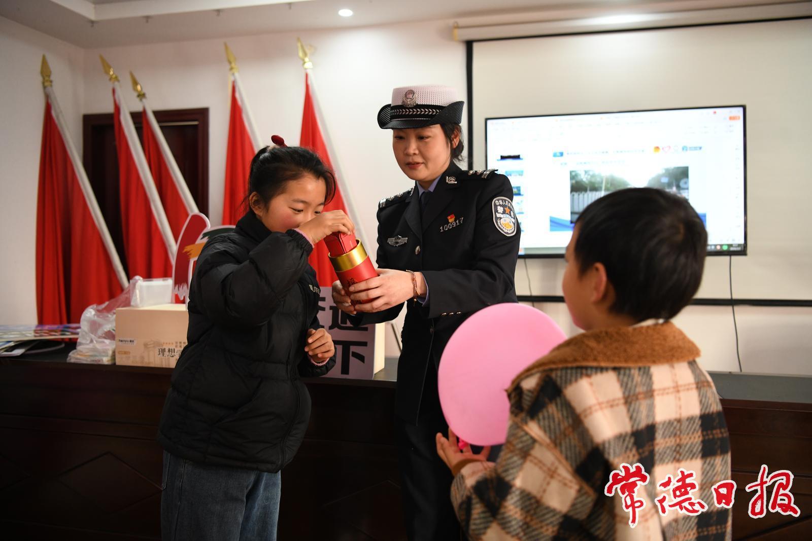 常德日報記者 王敏 通訊員 宋丹陽 文/圖 2月2日,津市市公安局交通警察大隊聯合津市市委社會工作部、津市市團委,聚焦“兩客一危一貨一校一面”及摩電車輛等“八類車輛”從業人員子女群體,精心策劃并開展了一場別開生面的交通安全宣傳活動,以專業知識與趣味互動為孩子們送上干貨滿滿的“安全大禮包”。