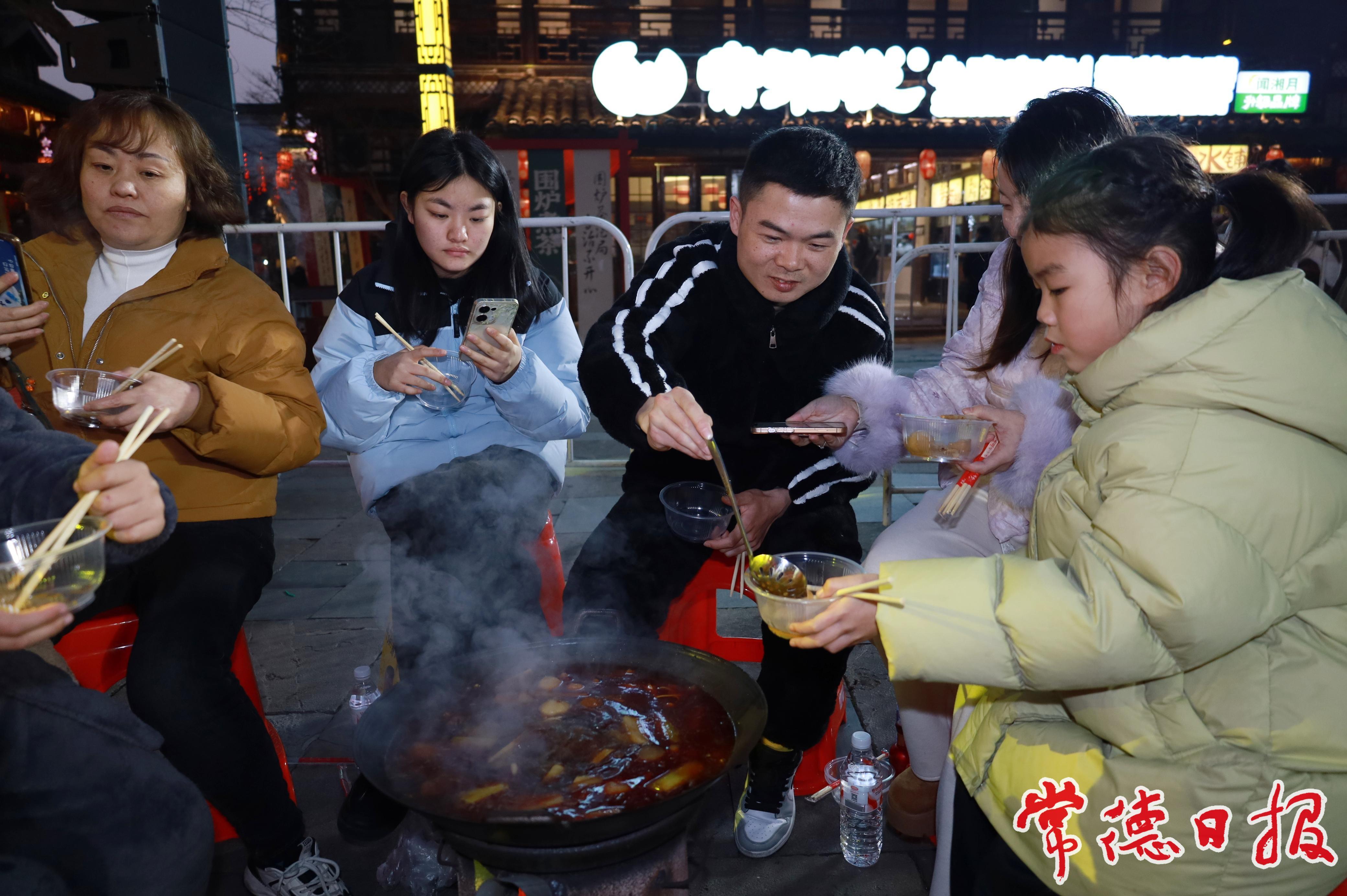 外地游客逛展的經歷,是活動引流效應的生動體現。邵陽人江禾被湖南鑫三香食品科技有限公司的米粉香氣吸引,他一連試吃了兩碗后發朋友圈點贊:“常德米粉真的香!”山東濱州一家基建公司的負責人王先生被展會吸引,當場下單5180元的惠生臘肉,并表示公司有很多湖南人,后續還會有采購需求。從本土市民到外地游客,從銀發老人到少年兒童,不同人群的歡聲笑語,讓常德河街成為這個春節最具煙火氣的打卡地。