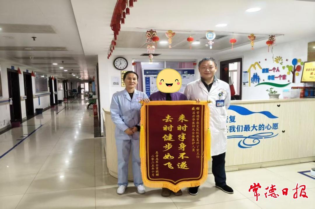 常德日報(bào)記者 李白 通訊員 王覃 文/圖 近日,常德市第八人民醫(yī)院康復(fù)醫(yī)學(xué)科收到一面特殊的錦旗,上書“來時(shí)半身不遂,去時(shí)健步如飛”。這面錦旗的背后,是一位癌癥術(shù)后突遭肢體癱瘓的患者,在該院專業(yè)康復(fù)團(tuán)隊(duì)的幫助下,重獲行走能力、回歸正常生活的動(dòng)人故事。