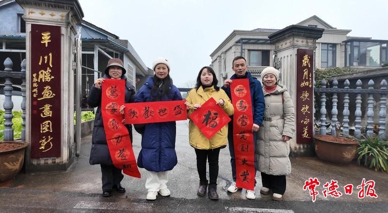 春節前夕,常德市楹聯家協會常務副主席劉立軍來到代依林家送福字,這位90后鄉村解說員感動不已,她指著家門口這副“歲月如歌歌詠美,平川勝畫畫圖新”的對聯贊不絕口,稱貼上對聯后,村里的家家戶戶多了幾分文化味。代依林告訴記者,十多年前外出務工時,屋旁邊還是狹窄的水泥路,這幾年,村里大變樣了,基礎設施不斷完善,田園風光愈發秀美,這讓她非常驕傲和自豪,心中涌起一種強烈的歸屬感。