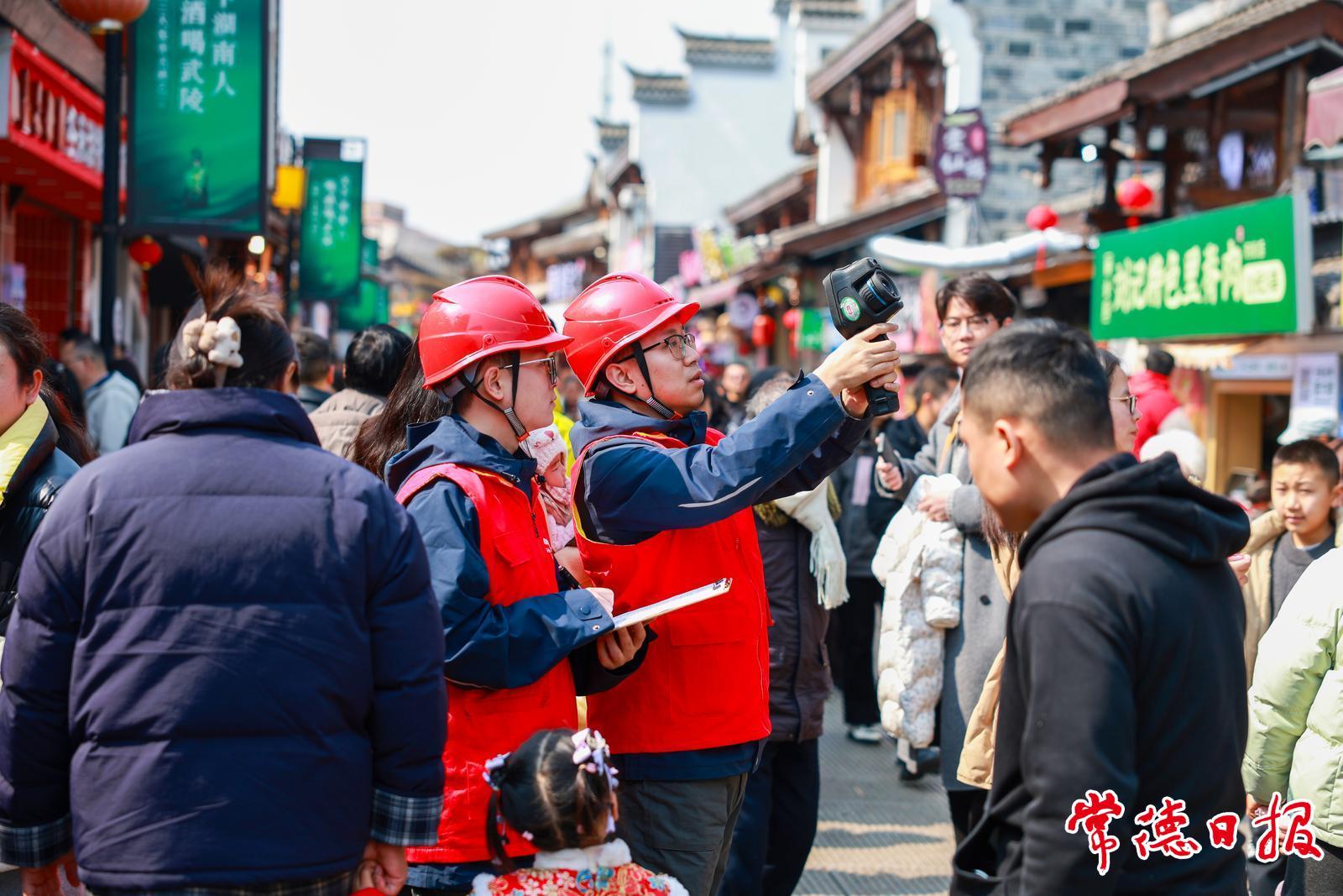 中午,兩人來到常德河街。陽光正好,街上人頭攢動,紅紅火火的年味兒撲面而來。兩人穿行在人流中,繼續巡檢。