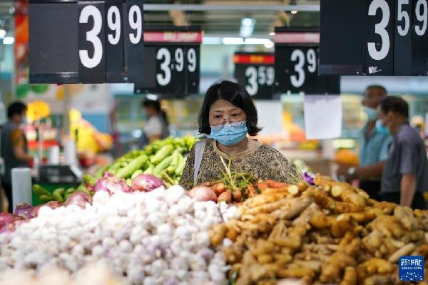 ????市民在江蘇省無(wú)錫市經(jīng)開區(qū)華潤(rùn)萬(wàn)家超市購(gòu)物(2022年7月7日攝)。江蘇省無(wú)錫市在做好疫情防控的同時(shí),積極制定相關(guān)方案,制作城市保供地圖,組織大型商超、市場(chǎng)正常運(yùn)營(yíng),全力保供穩(wěn)價(jià),端穩(wěn)市民“菜籃子”。新華社記者 李博 攝