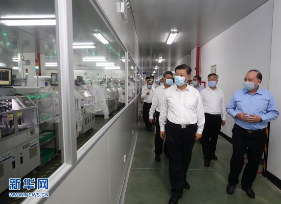 ????2020年10月12日至13日,中共中央總書記、國家主席、中央軍委主席習近平在廣東考察。這是12日下午,習近平在潮州市潮州三環(集團)股份有限公司生產車間考察。 新華社記者 王曄 攝