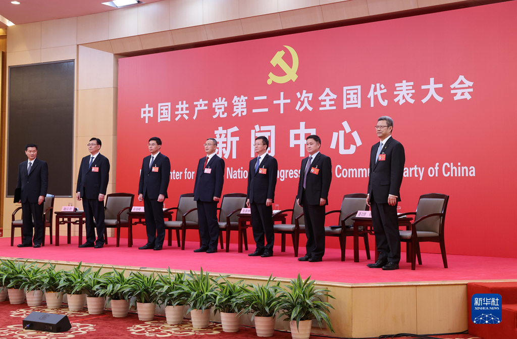 10月20日,中國共產(chǎn)黨第二十次全國代表大會新聞中心舉行集體采訪。青海、寧夏、新疆、中央和國家機關、中央金融系統(tǒng)、中央企業(yè)系統(tǒng)(在京)代表團新聞發(fā)言人出席,介紹代表團學習討論二十大報告情況,并回答記者提問。新華社記者 陳建力 攝