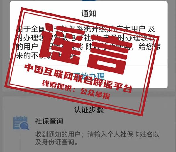辟謠:短信提示社保賬號狀態(tài)“異常”需速辦登記認(rèn)證?假的!