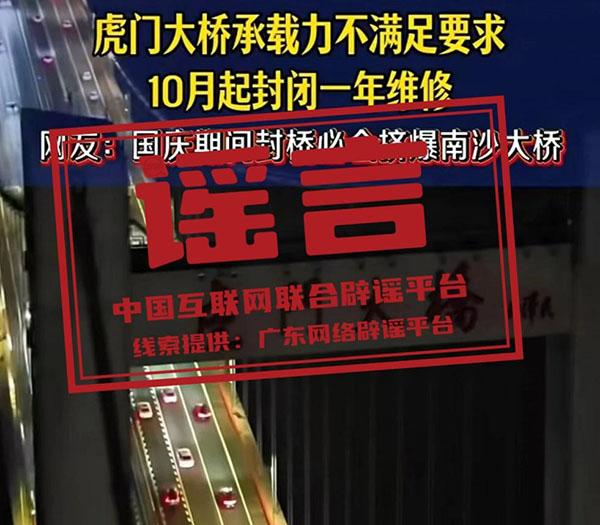 謠言:廣東虎門大橋10月起封閉維修?